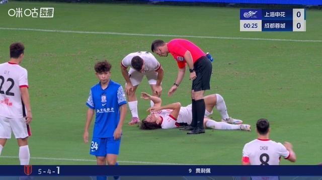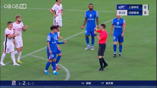 09月21日讯 中超第25轮,上海申花vs成都蓉城。比赛开场仅20秒,元敏诚与刘诚宇边路对抗后倒地不起,随后刘诚宇被主裁出示黄牌。