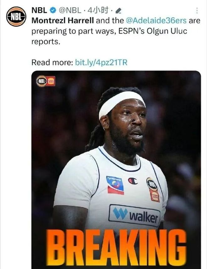 阿德莱德36人队做出了一个艰难决定:放弃上赛季场均20.5分9.3篮板的蒙特雷斯·哈雷尔。今年5月份,双方刚刚达成一年续约合同,但短短一个月后情况急转直下——6月份哈雷尔被CBA官方查出违规服用兴奋剂,这一事件直接导致澳洲球队与他解约。这一决定对31岁的哈雷尔来说是沉重打击。从NBA最佳第六人到被澳洲联赛放弃,他的职业生涯正在以惊人的速度下滑。