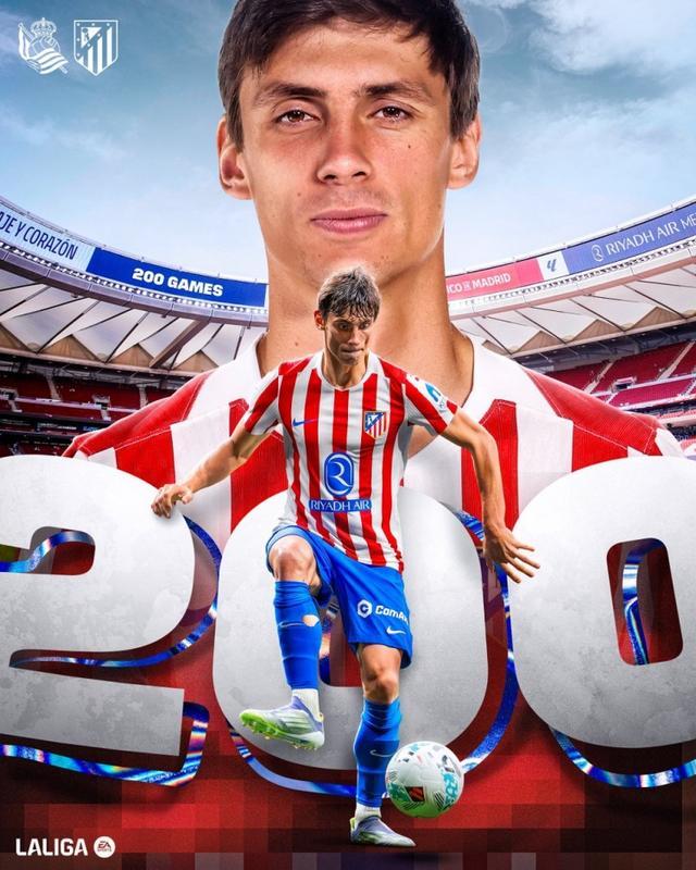 西甲官方发布海报,祝贺马竞后卫勒诺尔芒迎来西甲200场里程碑
