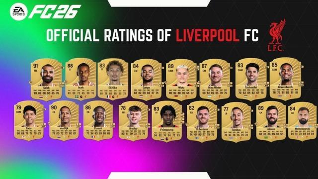 利物浦全队拆箱EAFC26评分:维尔茨引“嫉妒”赫拉芬贝赫笑嘻了
