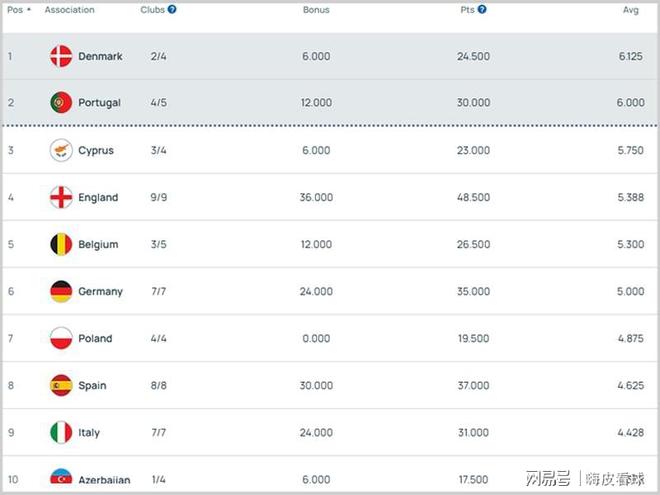 有趣的是,根据欧足联官网最新的积分榜,西甲和意甲的单赛季积分暂时只有4分多,比德甲(5.000分)要低一些,这是合理的。但是保持不败的德甲,比输了两场的英超(5.388分)还要低,似乎有点难以理解。