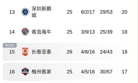 9月27日讯 中超联赛第26轮,长春亚泰主场2-2绝平青岛海牛,目前积18分暂时排名中超倒数第二。