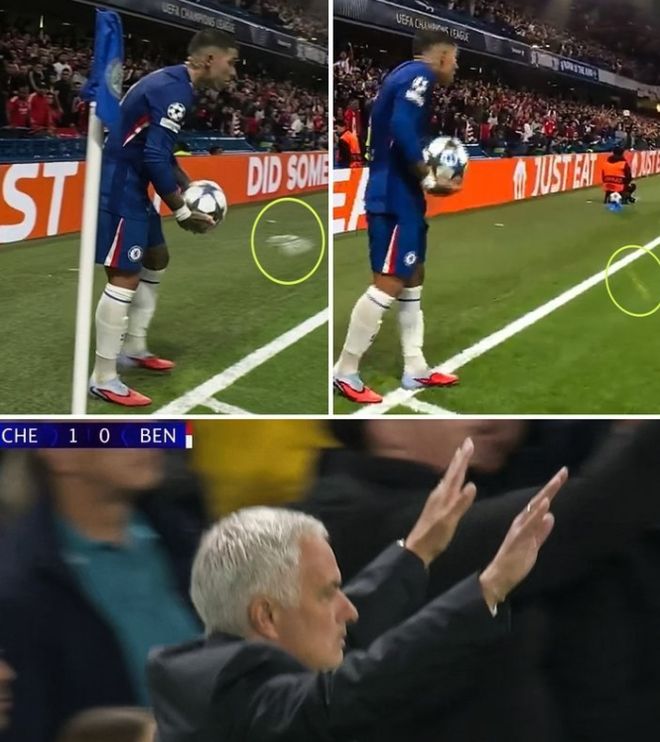 切尔西在获得角球的时候,恩佐上前进行主罚,由于罚球的位置靠近本菲卡球迷所处的区域,恩佐的罚球遭到了球迷的干扰,不仅仅是漫天的嘘声和嘲讽,甚至还有部分球迷向恩佐投掷水瓶等杂物。在场边看到这一幕的穆里尼奥并没有坐视不管,而是主动走到本菲卡球迷所在的区域,希望球迷冷静,不要以这样的方式对待恩佐,本菲卡的球迷在此后也有所收敛。