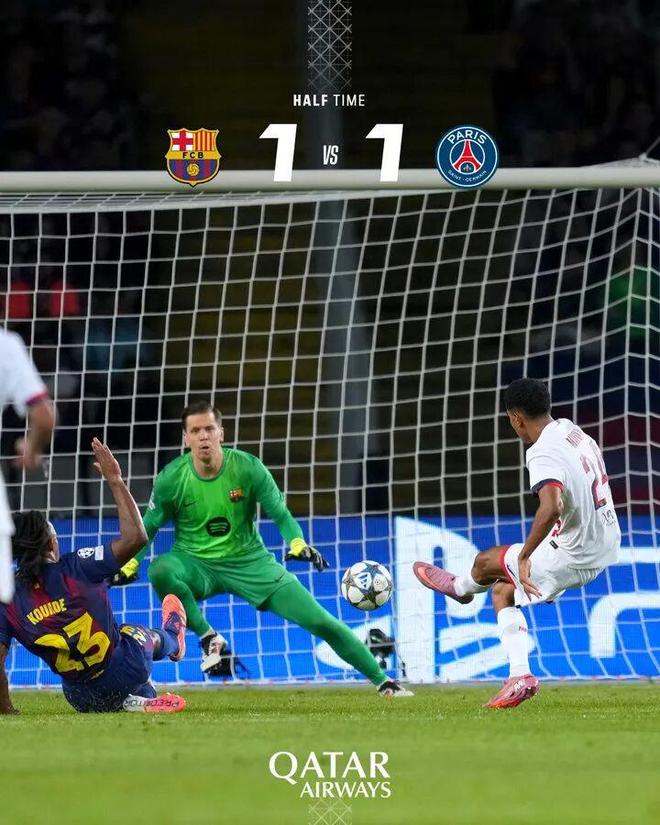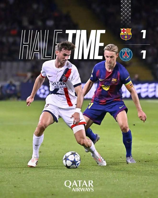 半场结束,球队暂时1:1巴塞罗那。