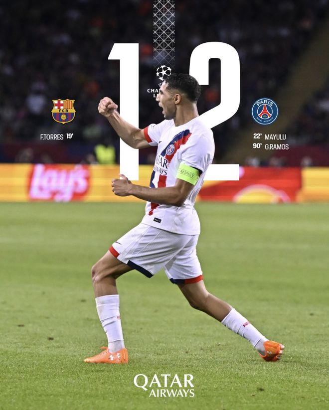 最终,巴黎在客场1:2战胜巴塞罗那,取得欧冠两连胜!!