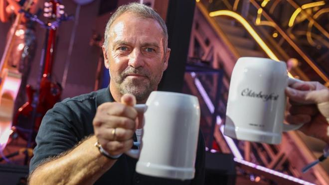 弗里克与助教马库斯·佐尔格一同出席了活动,并接受了采访。与大多数德国人不同,弗里克坦言,自己从未真正参加过慕尼黑的啤酒节。不过,他还是按照传统,一锤敲开了酒桶,举杯开启庆典。有趣的是,他最终将酒杯赠予他人,并未饮用——毕竟第二天还要带队训练,备战对阵塞维利亚的关键比赛,全力保住榜首位置。