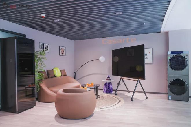 从现场展区、休息区到赛场观赛包厢,卡萨帝的身影无处不在。零贴平嵌的电视、洗烘联动的洗衣机、智能保鲜的冰箱、AI语音交互的空调……科技新品已全面融入运动员衣、食、住、娱的生活。
