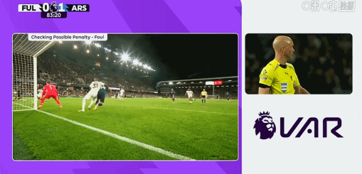 第68分钟,萨卡造点,VAR介入后裁判取消点球