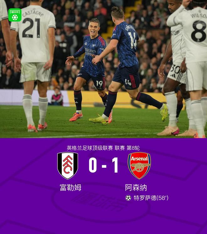 剑南春阿森纳10客胜富勒姆,加布里埃尔助攻特罗萨德制胜