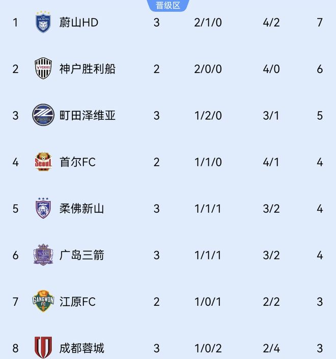 随着海港+蓉城皆02失利,亚冠最新积分榜出炉:榜首+垫底队易主