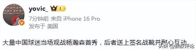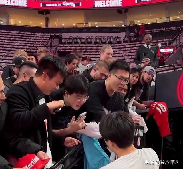 实际上除了中国球迷之外,也包括不少外国友人,杨瀚森当地的人气显然也是非常之高,代表作开拓者的流量招牌之一。杨瀚森非常暖心,有球衣满足签名外,有球迷带着战靴同样满足签名,各方面照顾中国球迷的情绪,完成互动。杨瀚森最后一场季前赛,提到自己泪洒现场的话题曾表示:除了自己打得不好外,离场前听到有人喊自己,掉了几颗小珍珠。