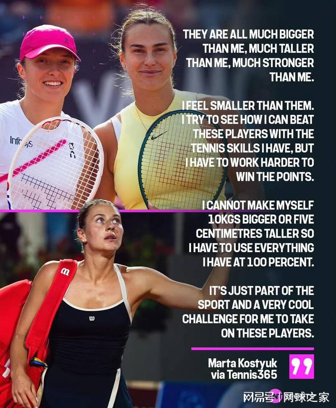 科斯秋克的言论中最为网友质疑的一点,在于她对身高的描述。根据官方数据,科斯秋克身高1.75米,而斯瓦泰克为1.76米,两人身高仅差1厘米。而萨巴伦卡身高1.82米,确实比科斯秋克高出7厘米,但这一差距在女子网坛并不罕见。