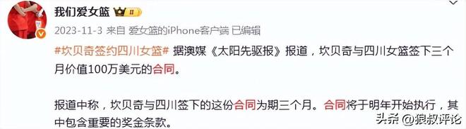 据澳大利亚媒体《太阳先驱报》报道,坎贝奇与四川女篮合同高达百万年薪,琼斯也是一档大外援行列。这样配置已经不能用豪华形容,堪称除了WNBA争冠球队外,全世界最为顶尖的配置。若是外援不能超过100万工资帽,坎贝奇+琼斯面临选择外,四川女篮在寻找新的外援上,她们也不可能像过去几个赛季那样投入大量的财力,而一些大牌外援也不会缺乏其他俱乐部合同。