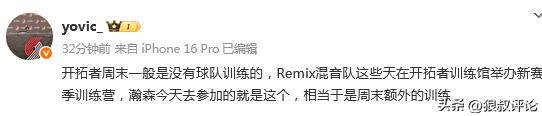 不久前,开拓者中文记者“yovic”发文:开拓者周末一般是没有球队训练的,Remix混音队这些天在开拓者训练馆举办新赛季训练营,瀚森今天去参加的就是这个,相当于是周末额外的训练。在本赛季出战的5场比赛中,杨瀚森场均出战5.8分钟得到1.8分0.8篮板0.4盖帽,投篮命中率22.2%(9中2),三分命中率0%(3中0),罚球命中率83.3%(6中5)。