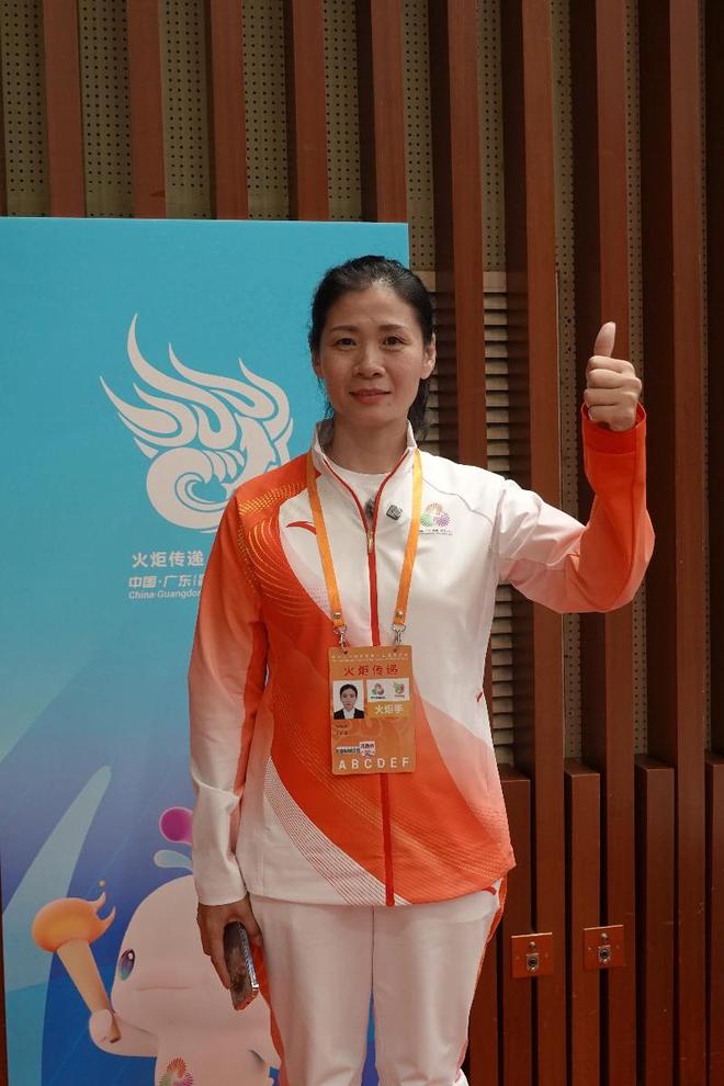 10月下旬,当成为火炬手的电话通知打进来时,广州市指尖力量文化传播有限公司总经理王娟正跟客户打视频电话。一开始,她以为是诈骗电话,后来接到官方短信通知,才确认自己真的入选了,“真的像做梦一样”,当她把这个好消息分享给亲朋好友时,他们都开玩笑说“我们现在离十五运火炬也老近了”。