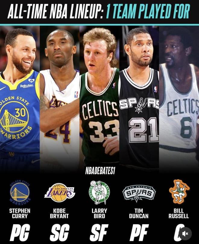 近日,知名篮球媒体账号 NBA Debates盘点了“只效力一队”的历史最佳阵容,科比、库里等入选。下面就这套阵容的整体实力与争冠可能做个简评。
