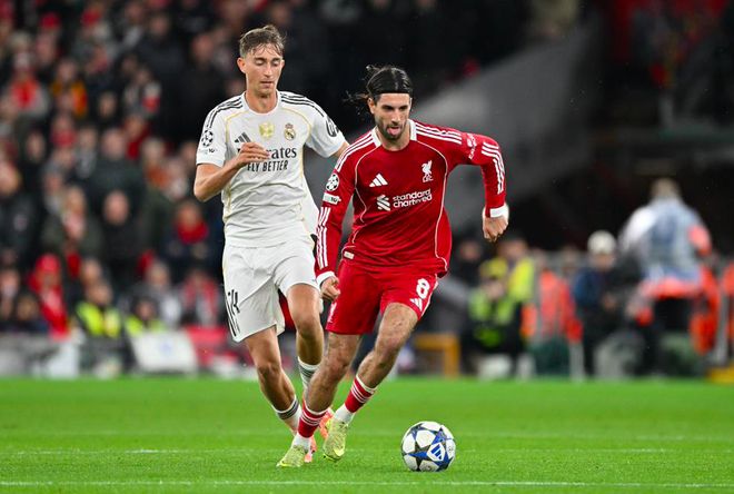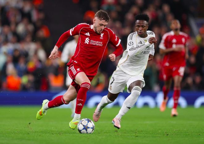 第61分钟,贝林厄姆身后放倒赫拉芬贝赫,利物浦获得位置不错的任意球,索博斯洛伊将球开出,麦卡利斯特抢点头球,这一次,库尔图瓦无能为力了。