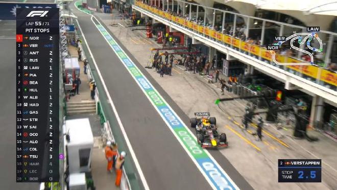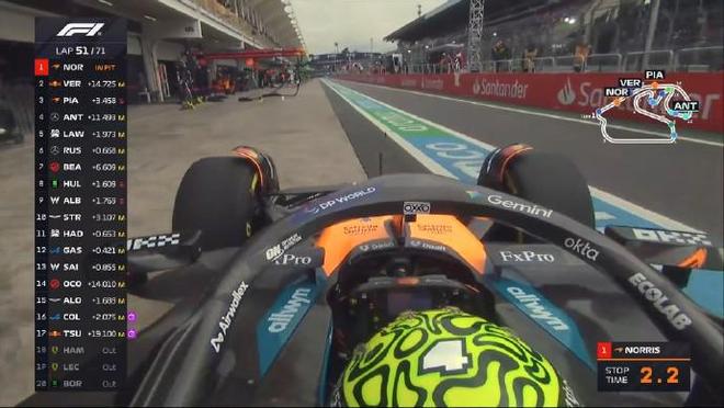 第五十一圈:诺里斯二停,维修区起步的维斯塔潘暂时领跑