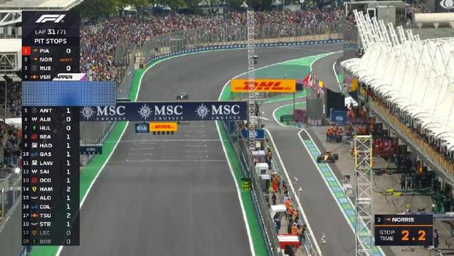 第三十一圈:领跑的诺里斯进站,出站后处在P4的位置上