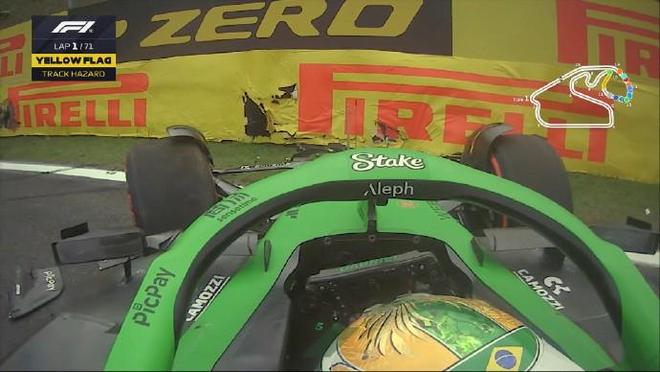 博托莱托被斯特罗尔挤到赛道边缘,随后撞墙,安全车出动
