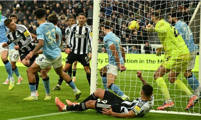第68分钟,多库和B席战术角球传中造成了纽卡门前混战,霍尔解围变乌龙助攻,迪亚斯近距离抽射产生折射弹进网窝,1:1!曼城立马做出回应,这也是迪亚斯4年多以来的首个英超进球。第70分钟,场上风云再起;沃尔特马德发挥身高优势高高跃起头球摆渡,后门柱的吉马良斯头球接力击中了立柱,哈维-巴恩斯近距离补射再度将比分反超,1:2!双方浪费了不少得分机会后,又在短短7分钟合力打进3球。