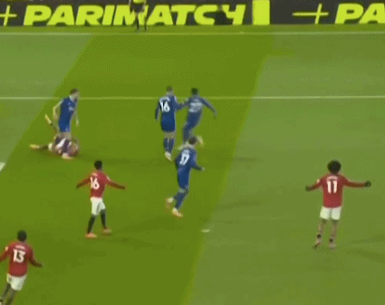 比赛第12分钟,埃弗顿阻截曼联的进攻。盖耶在本方禁区传球,准备与队友迈克尔-基恩打出配合。不过,基恩没有理解盖耶的意图。曼联得球,B费一脚劲射偏出。