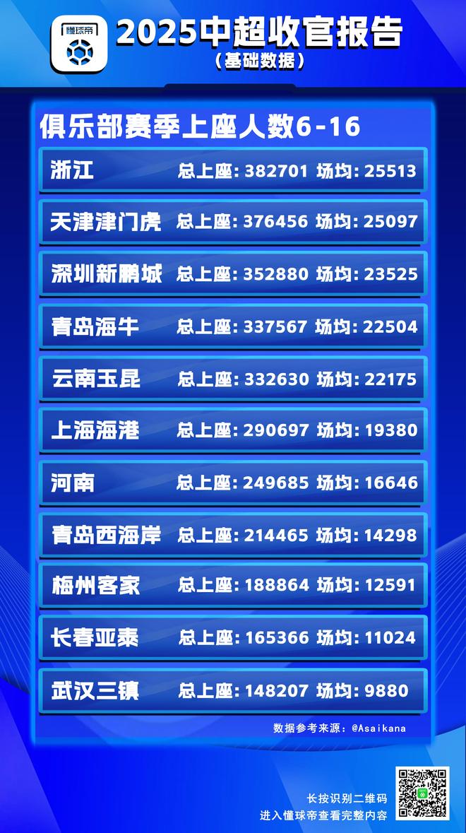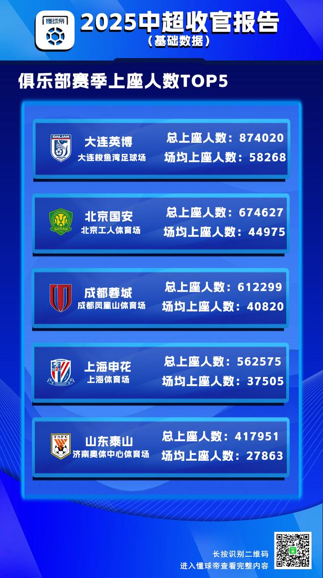 赛季上座人数相关数据