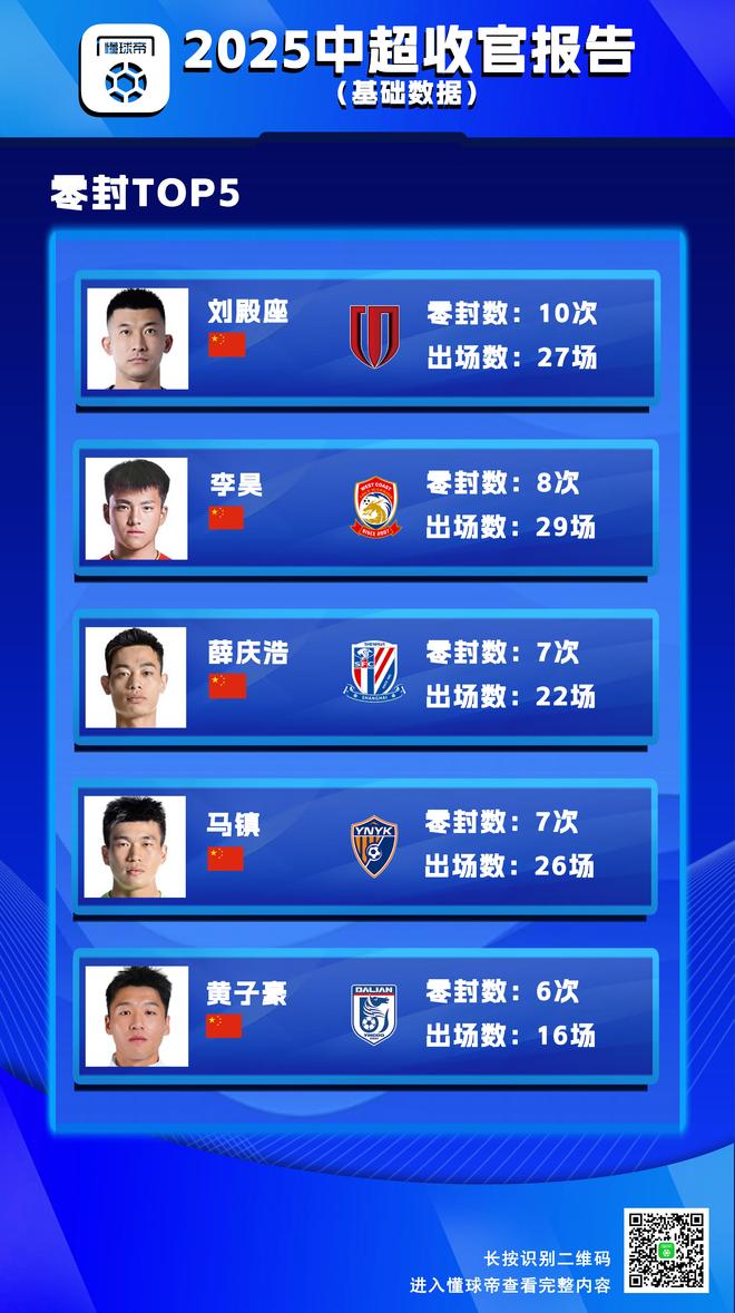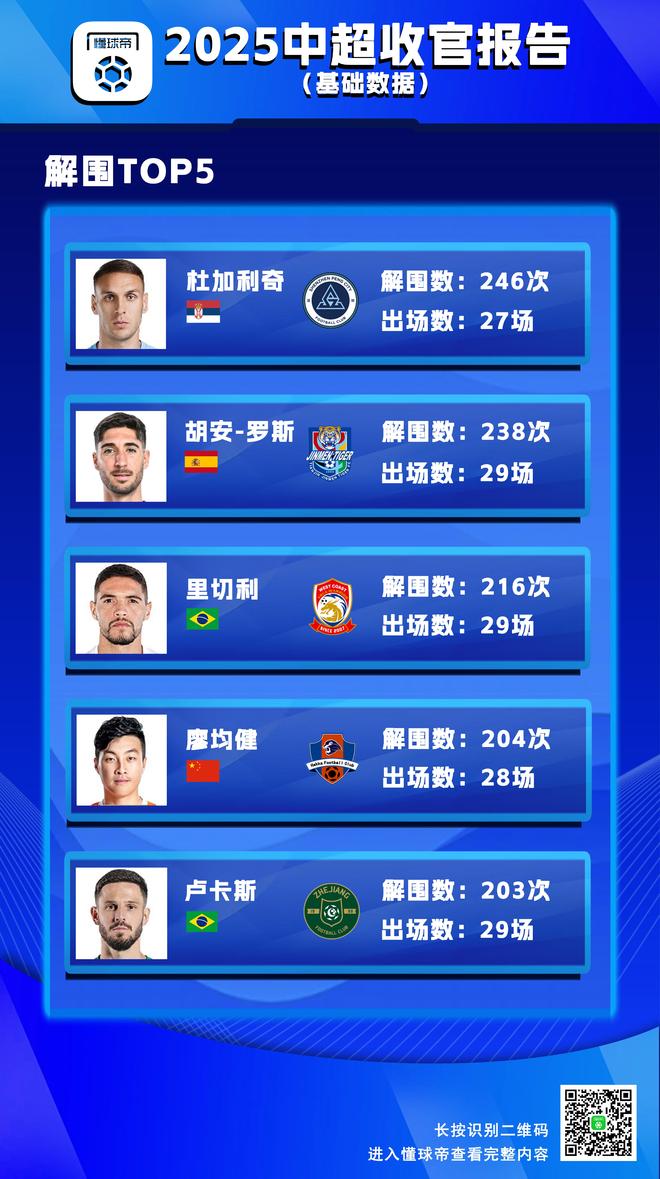 联赛出场王TOP5