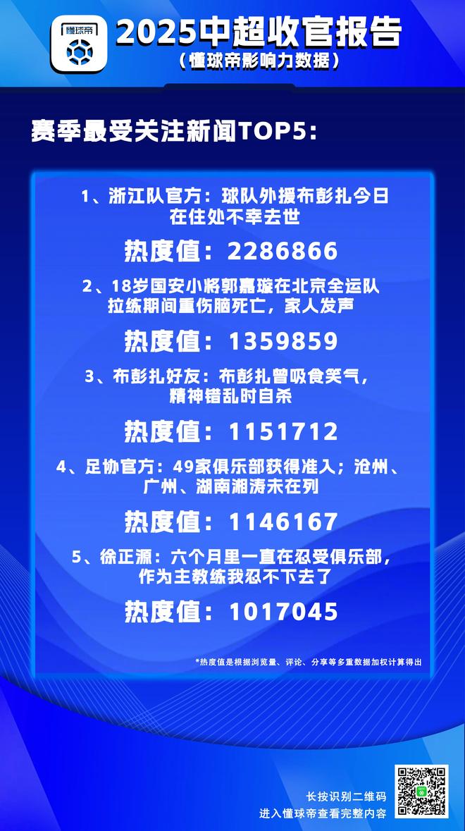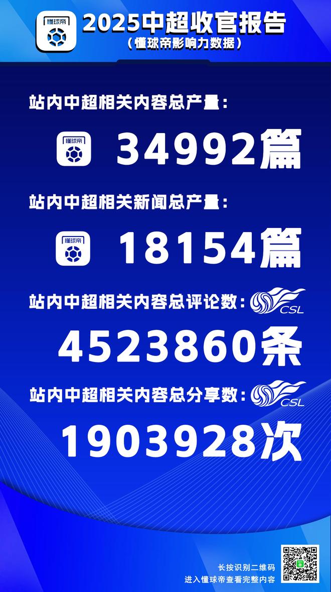 2025赛季是一个充满话题的赛季,联赛争冠、金靴争夺、保级大战、年轻球员涌现、球迷争端……在这一个赛季的时间里,共有接近3.5万篇中超相关内容在懂球帝上线,其中新闻内容占据1.8万篇,超过所有中超内容的50%,我们一如既往地为大家呈现了来自懂球帝以及各方的消息。
