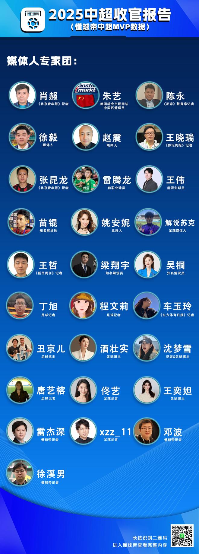 同时,懂球帝在此想感谢每一位参与到懂球帝中超MVP评选活动中的评审老师们,感谢各位老师对于懂球帝中超MVP栏目的大力支持。
