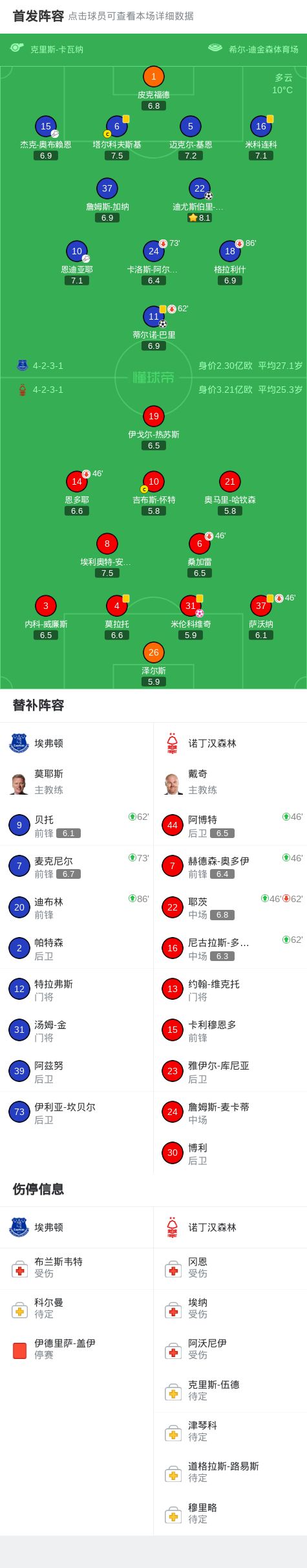 - 英超 | 埃弗顿30诺丁汉森林,霍尔破门+造米伦科维奇乌龙,巴里建功