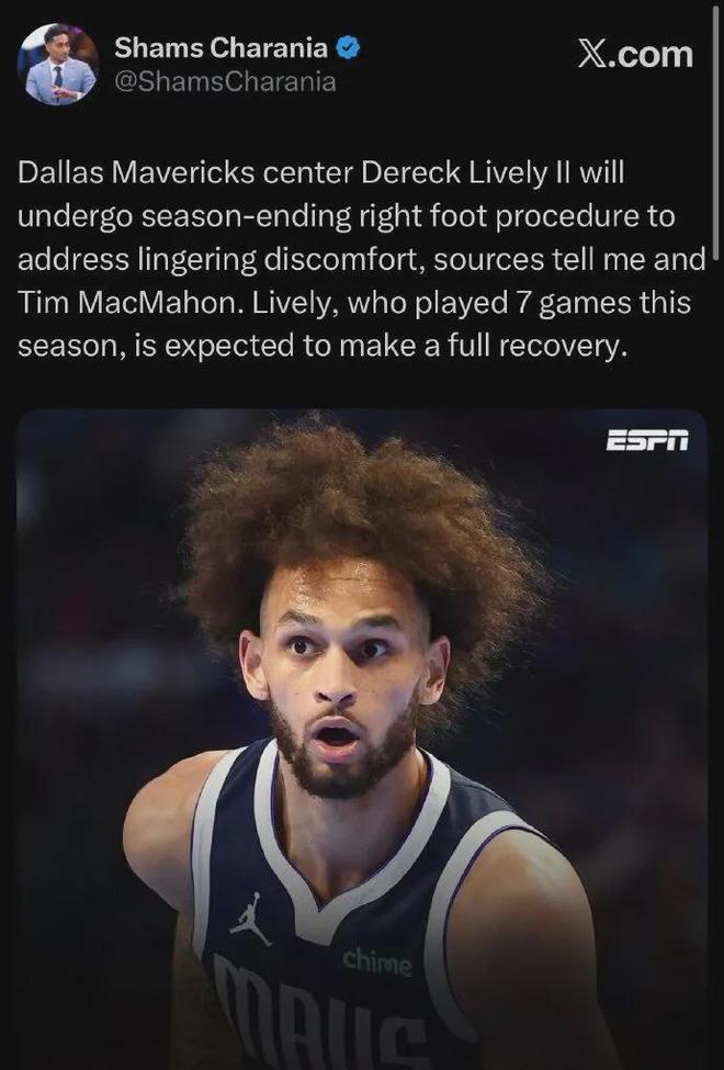 - NBA | No!正式宣布赛季报销!独行侠的主力中锋