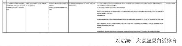 ④、曹永竞被责令依照亚足联纪律通告第4.1.2条,收到通知后,30日内支付1500美元罚款。