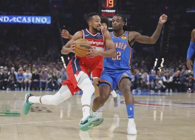 在进攻端他并未被时间老人追赶上,突破能力依然在线,场均突破9次在队内排名第2,目前总计突破攻框163次在全联盟排名第37,命中82球命中率50.3%属于合格水平,而且必须重点强调一下,再过1个月,他就35周岁了,他的身高仅有1米91,臂展1米96,在NBA身体天赋属于下档,他能以如此高龄如此劣势身体条件下保持这个效率,绝对应该高看一眼.